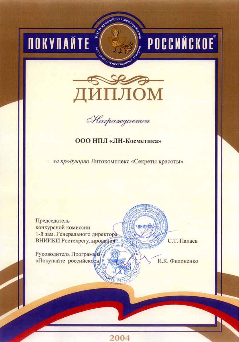 Компания ООО НПЛ «ЛН-Косметика» регулярно участвует во Всероссийских и Международных специализированных и межотраслевых выставках и конкурсах. Продукция Компании «Секрет красоты» отмечена медалями и дипломами. Многочисленные знаки признания подтверждают высокое качество и уникальность сухой косметики «Секрет красоты», а также эффективность работы Компании в продвижении продукции на рынок.
