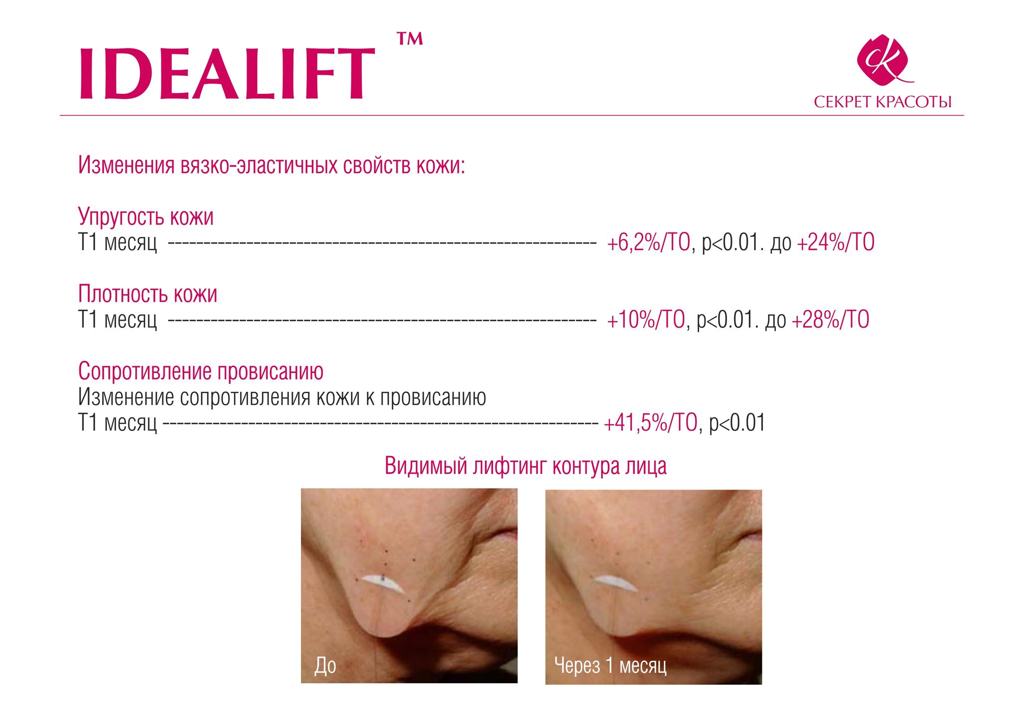 Этот компонент - IDEALIFT™ (Идеалифт). Раньше он был доступен только в специализированных препаратах, с которыми работают косметологические клиники. IDEALIFT™ - это комплекс пептидов нового поколения, способный решать проблемы старения, обвисания кожи. С такой проблемой девушки начинают сталкиваться впервые уже в 25-30 лет. Кожа теряет упругость, щеки начинают «сползать», морщины в зоне носогубного треугольника становиться все более явными. IDEALIFT™ способен не только стимулировать синтез эластина в коже, но и корректно «собирать» функционально активные волокна эластина в каркас, который держит кожу. IDEALIFT™ был клинически протестирован компанией «Sederma, известнейшей Европейской компанией, которая специализируется на разработке активных ингредиентов и создании инновационных технологий в области косметической индустрии. «Sederma» является мировым лидером по разработке активных ингредиентов для косметической индустрии, а так же стабильным партнером Научно-производственной лаборатории «ЛН-Косметика».