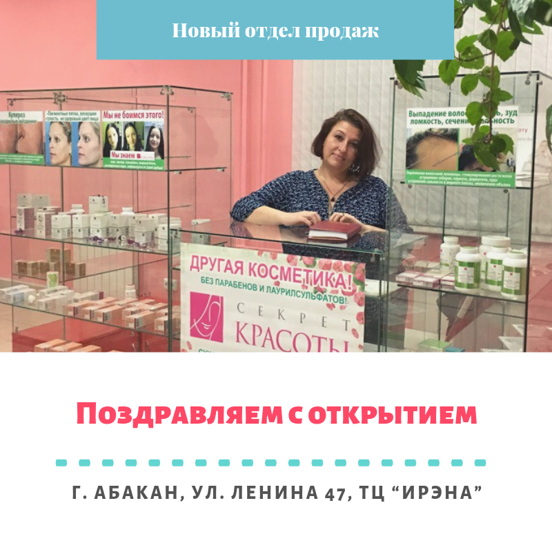 Уважемые Клиенты и Консультанты, Компании "Секрет Красоты" рады Вам сообщить, что в городе  Абакан открылась новая торговая точка!