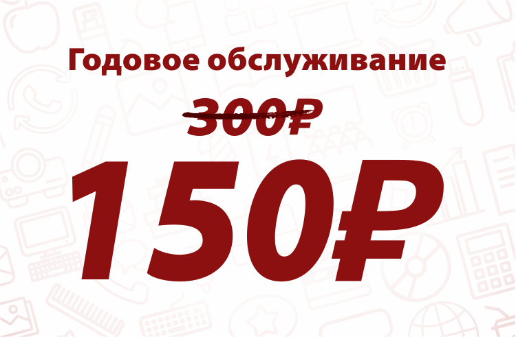 Таким образом, услуга годового обслуживания становится ниже на 50% (вместо 300 рублей)!
