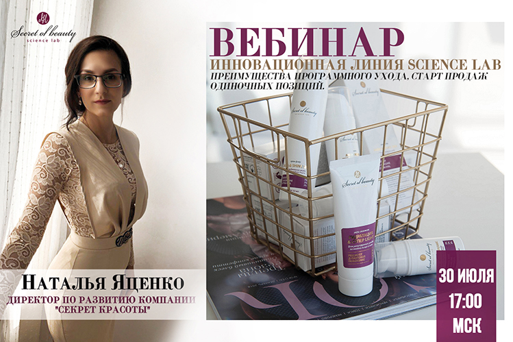 Уважаемые Консультанты и Клиенты Компании, рады Вас пригласить на очередной вебинар директора по развитию бизнеса Компании «Секрет Красоты» Натальи Яценко
