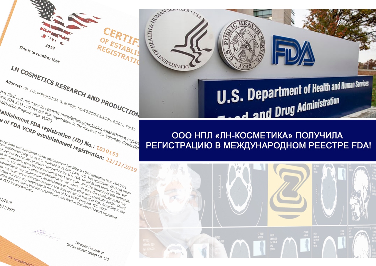 ООО НПЛ «ЛН-Косметика» получила регистрацию в международном реестре FDA!