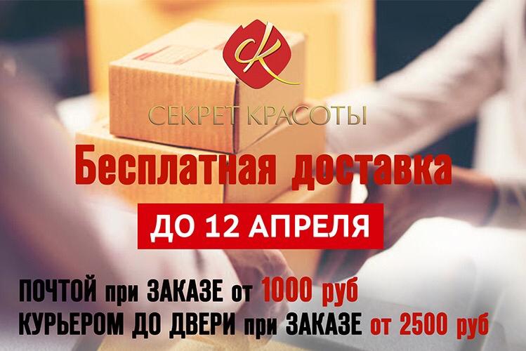 Режим самоизоляции в стране продлен, а в Компании «Секрет Красоты» продлена бесплатная доставка! До 12 апреля для всех Клиентов и Консультантов при заказе продукции Компании на сумму от 1000 рублей доставка почтой будет бесплатной!