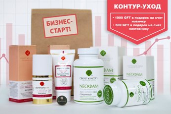 В рамках Акции «Бизнес-старт» мы настоятельно рекомендуем вам приобрести уникальные наборы косметических средств по специальной цене. И это еще не все! При покупке любого из двух ниже представленных наборов, все новые партнеры Компании получат особые привилегии, а именно: годовое обслуживание, регистрационный набор и фирменный корпоративный значок БЕСПЛАТНО, а так же 1000 GFT на свой подарочный счет. Наставник новичка так же получает от Компании дополнительное вознаграждение в виде 500 GFT на свой подарочный счет. Начисления GFT будут сделаны Компанией до 06.09.2017! Все наборы идут в крафт пакете с наклейкой.